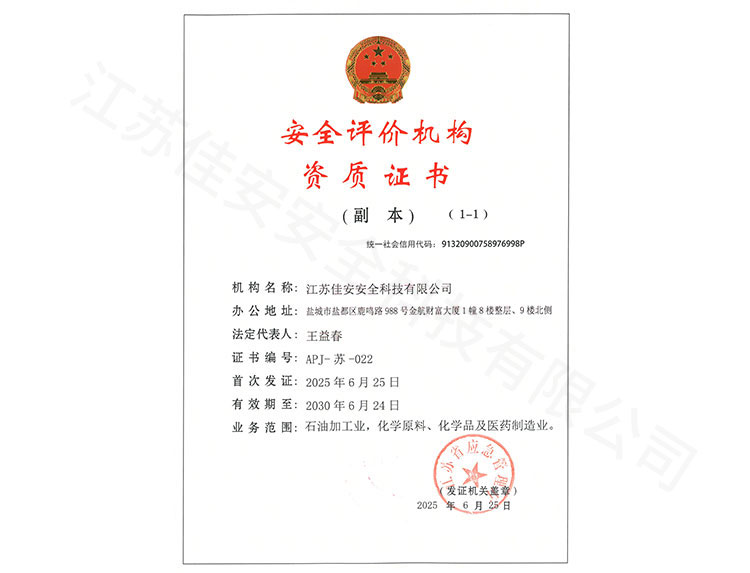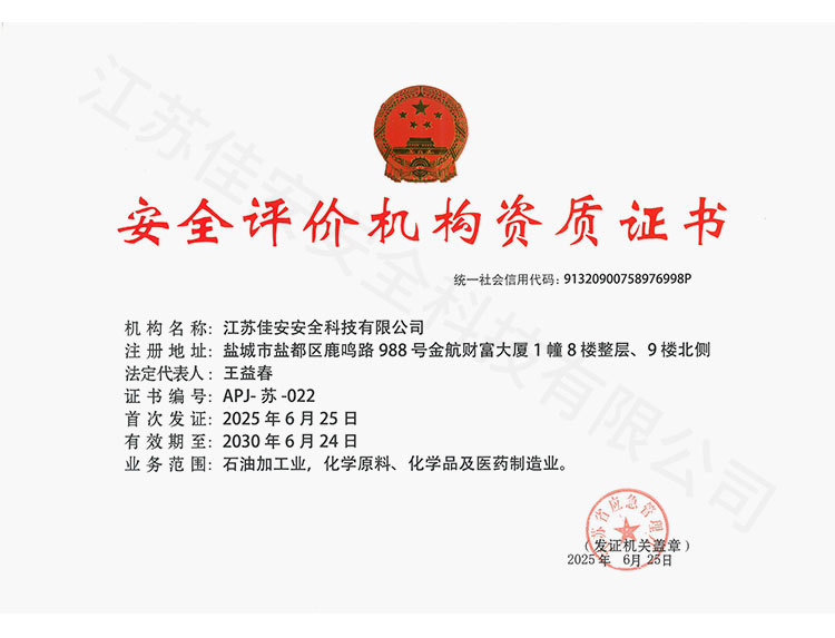濱海雅克化工有限公司“年產(chǎn)1500噸亞微米級球形二氧化硅漿料生產(chǎn)線建設項目”安全條件